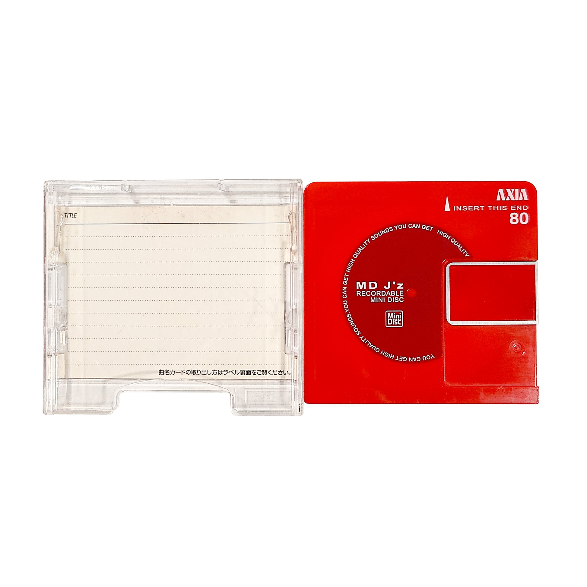 Genuine Axia MD J'z 80 recordable MiniDisc. Made in Japan. Includes generic case.