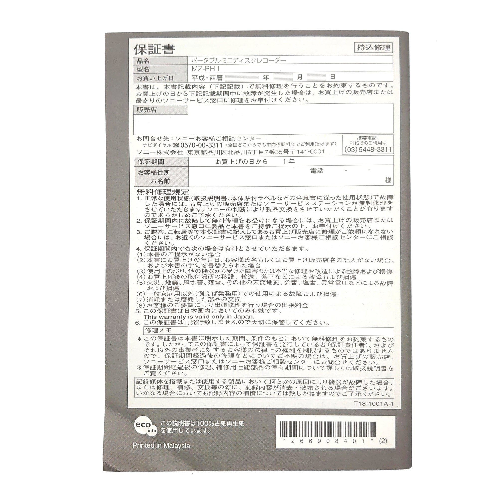 Sony MZ-RH1 operating instructions (Japanese and English). Quantity 1. Used.