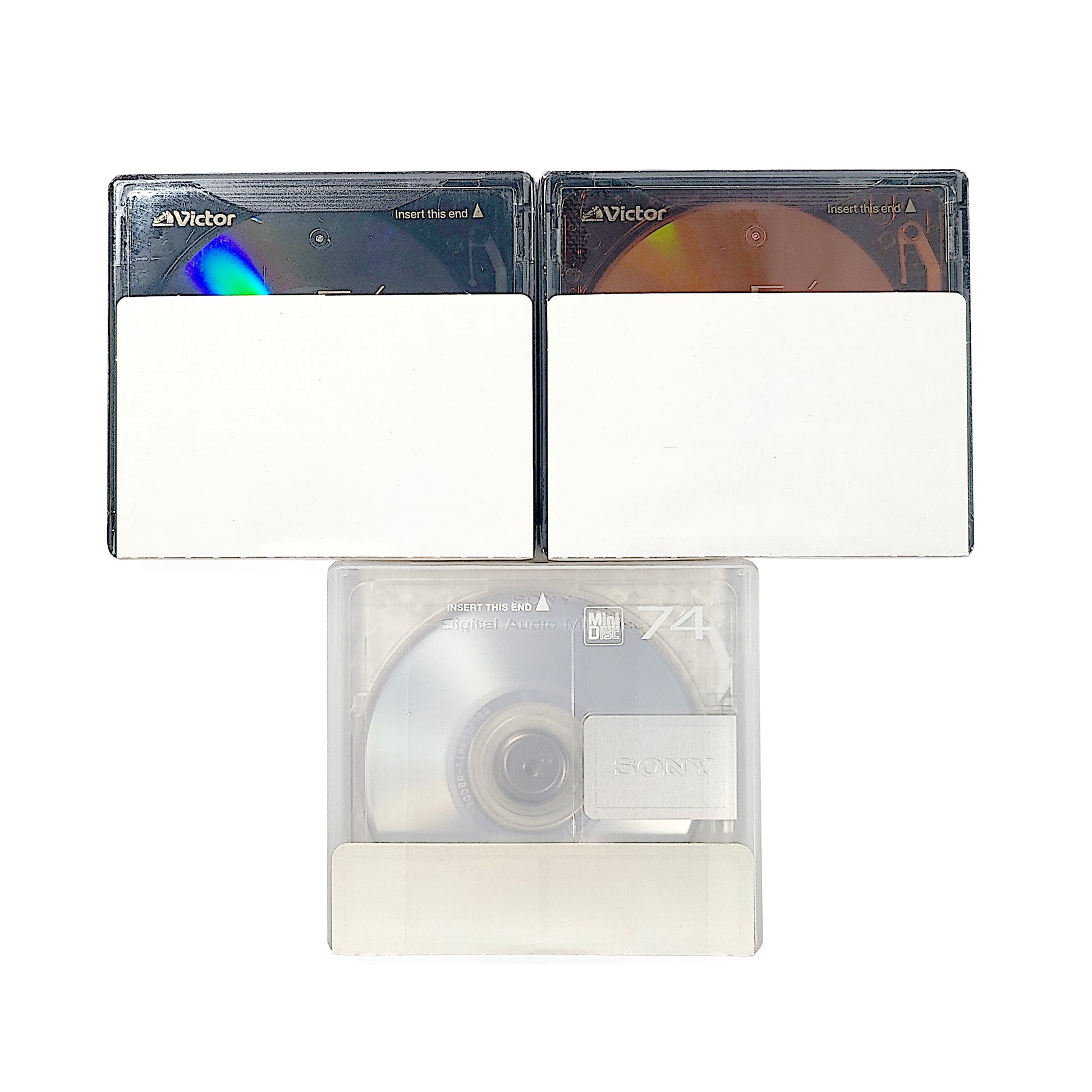 JVC Victor Fino and Sony Neige 74 recordable MiniDiscs. Quantity 3 discs. New, individually sealed.