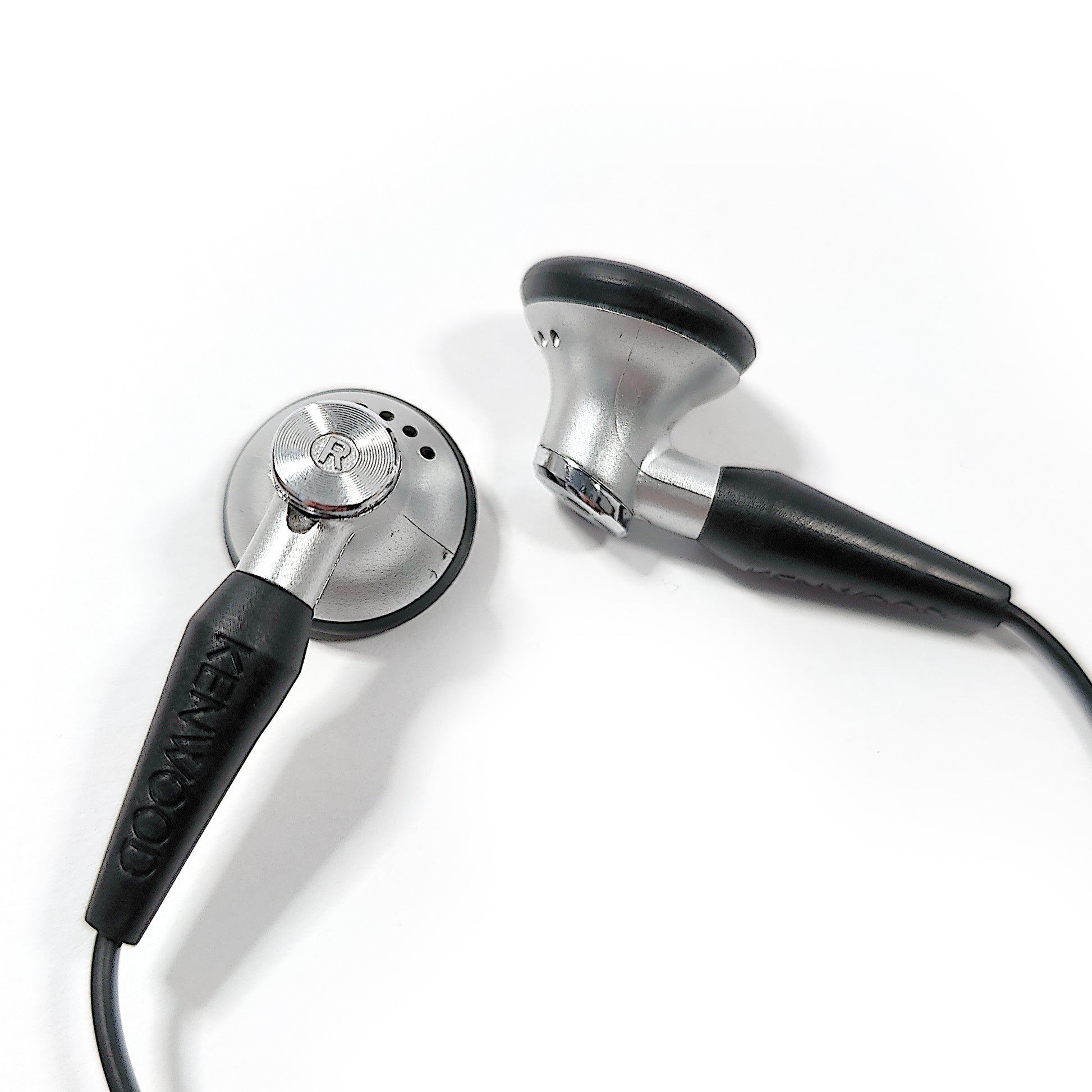 Kenwood earphones (black,silver). Straight plug, short cable type. Quantity 1. Used.