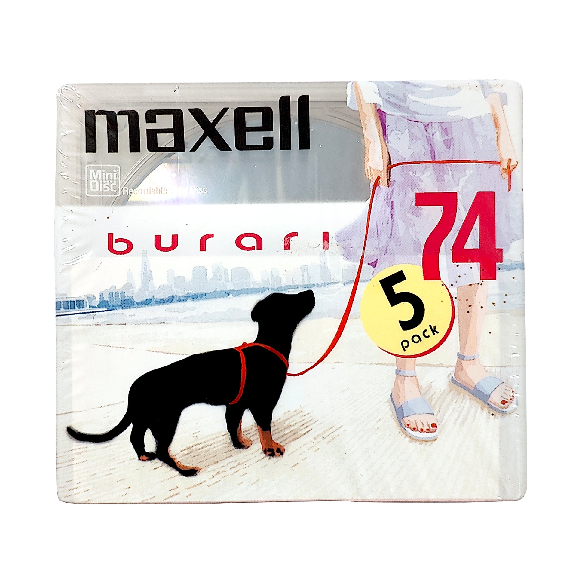 Genuine maxell Burari 74 minute recordable MiniDiscs. Five disc pack.