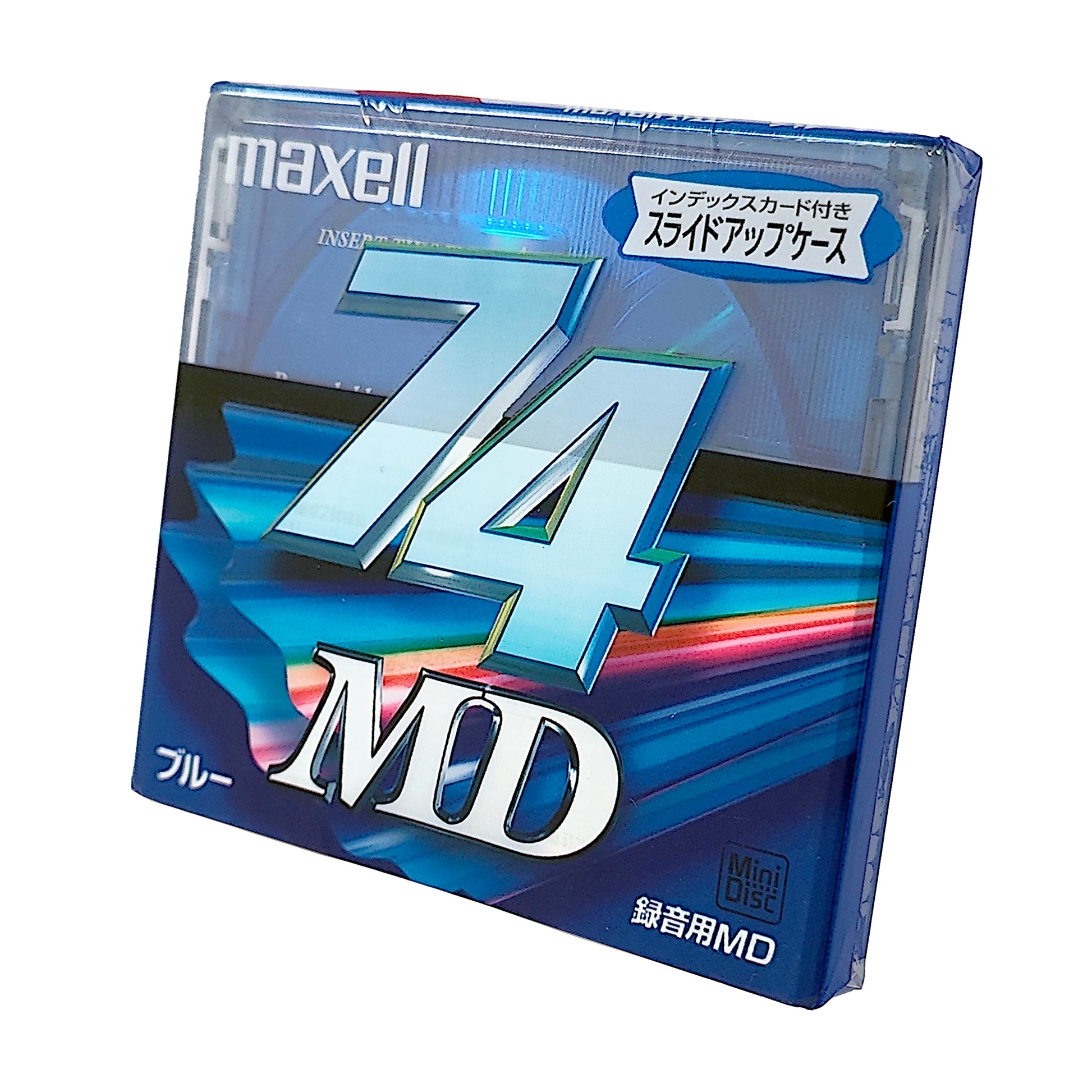 Genuine Maxell 74 minute recordable MiniDisc. Includes a 'slide up' case. Made in Japan.