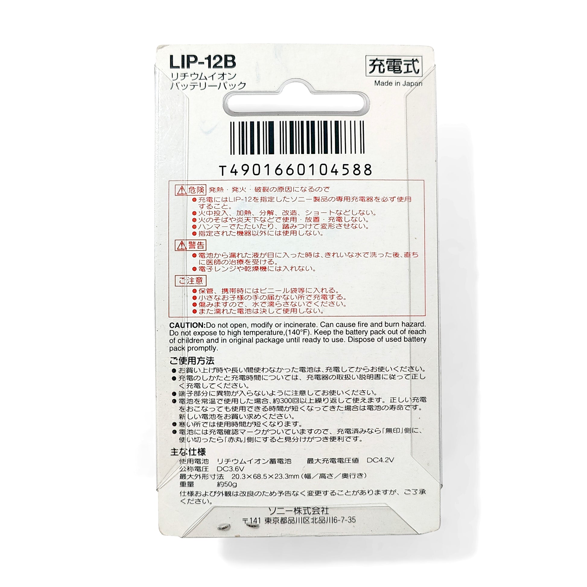 Genuine Sony LIP-12 lithium-ion rechargeable battery.
