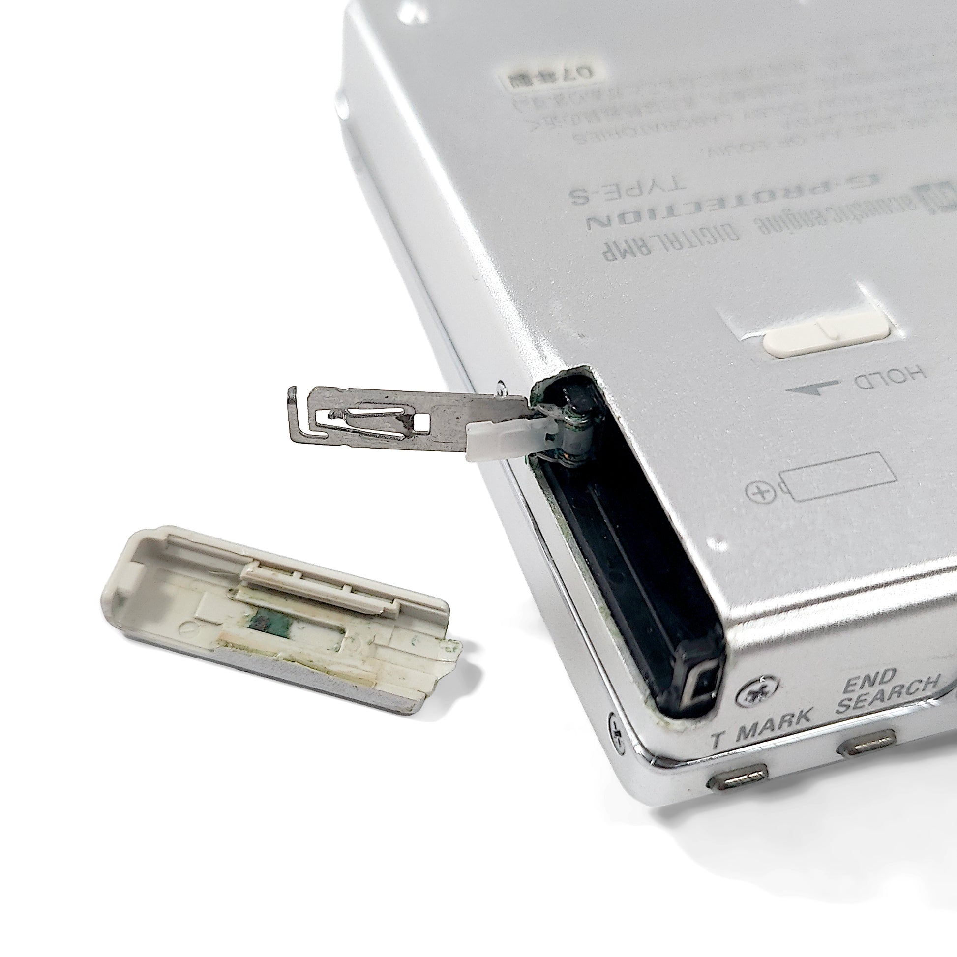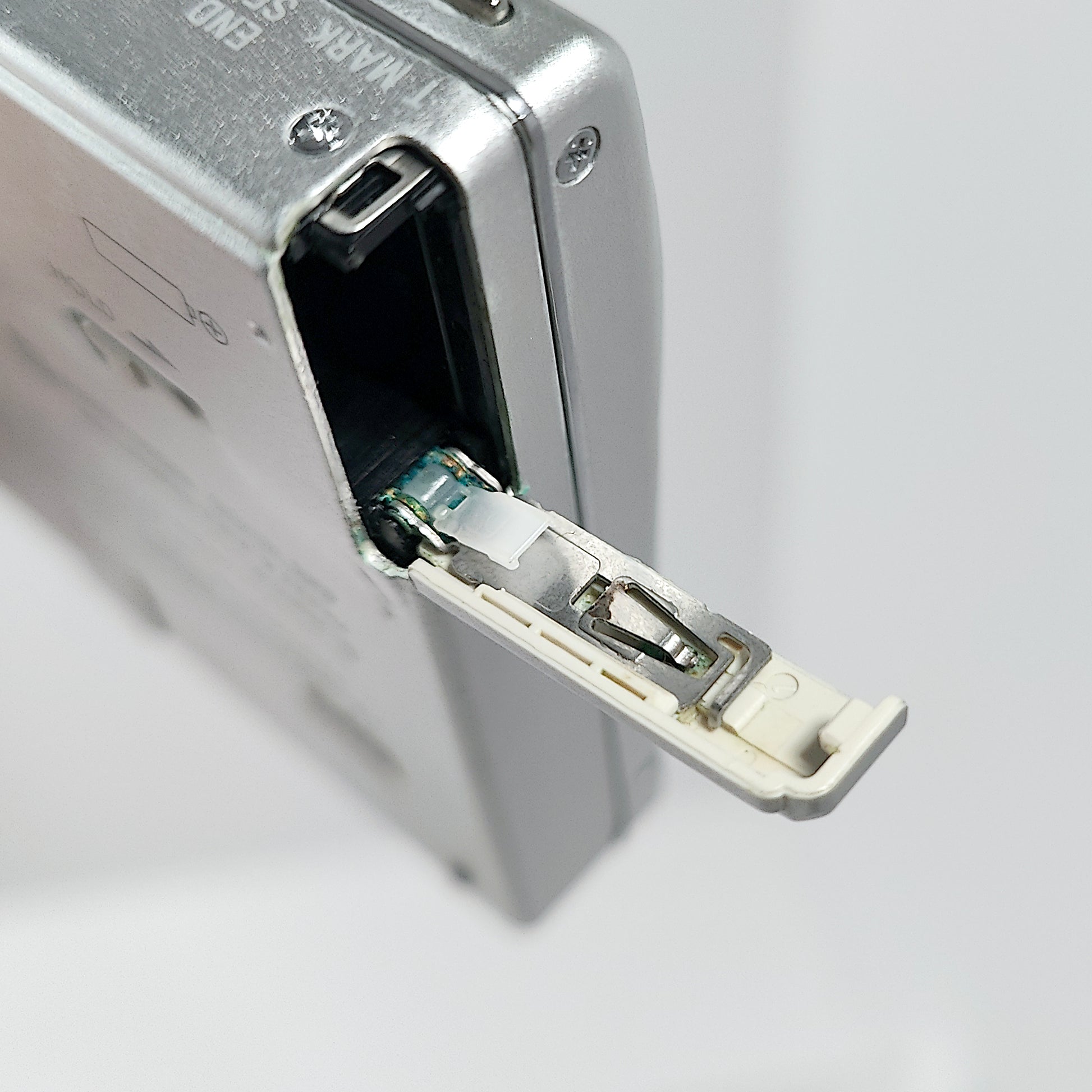 Internal Battery Compartment : Damage from past corrosion. The battery cover is damaged and comes off easily.