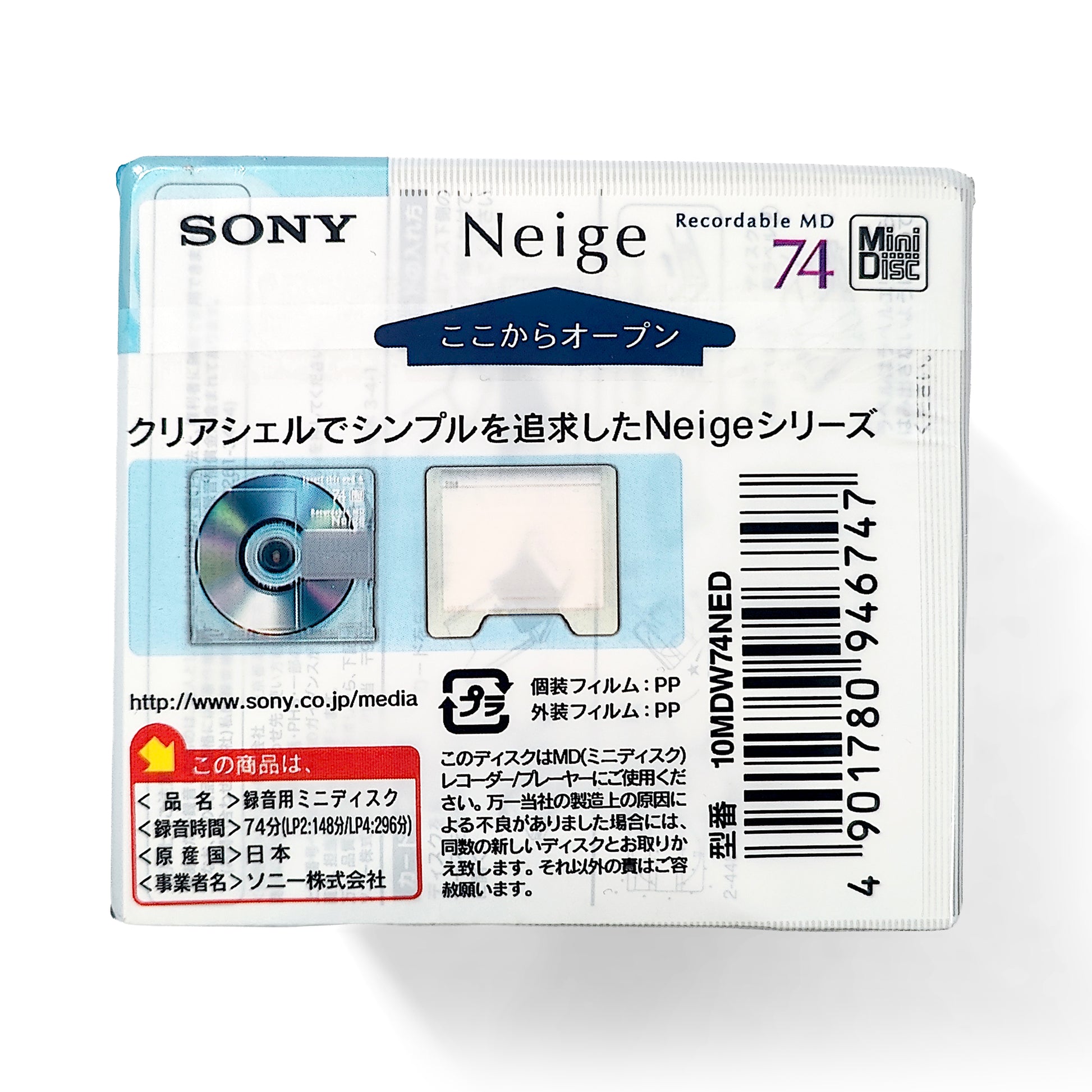 Genuine Sony Neige (fourth edition) 74 minute recordable MiniDiscs (2005). Factory sealed. Japanese import.