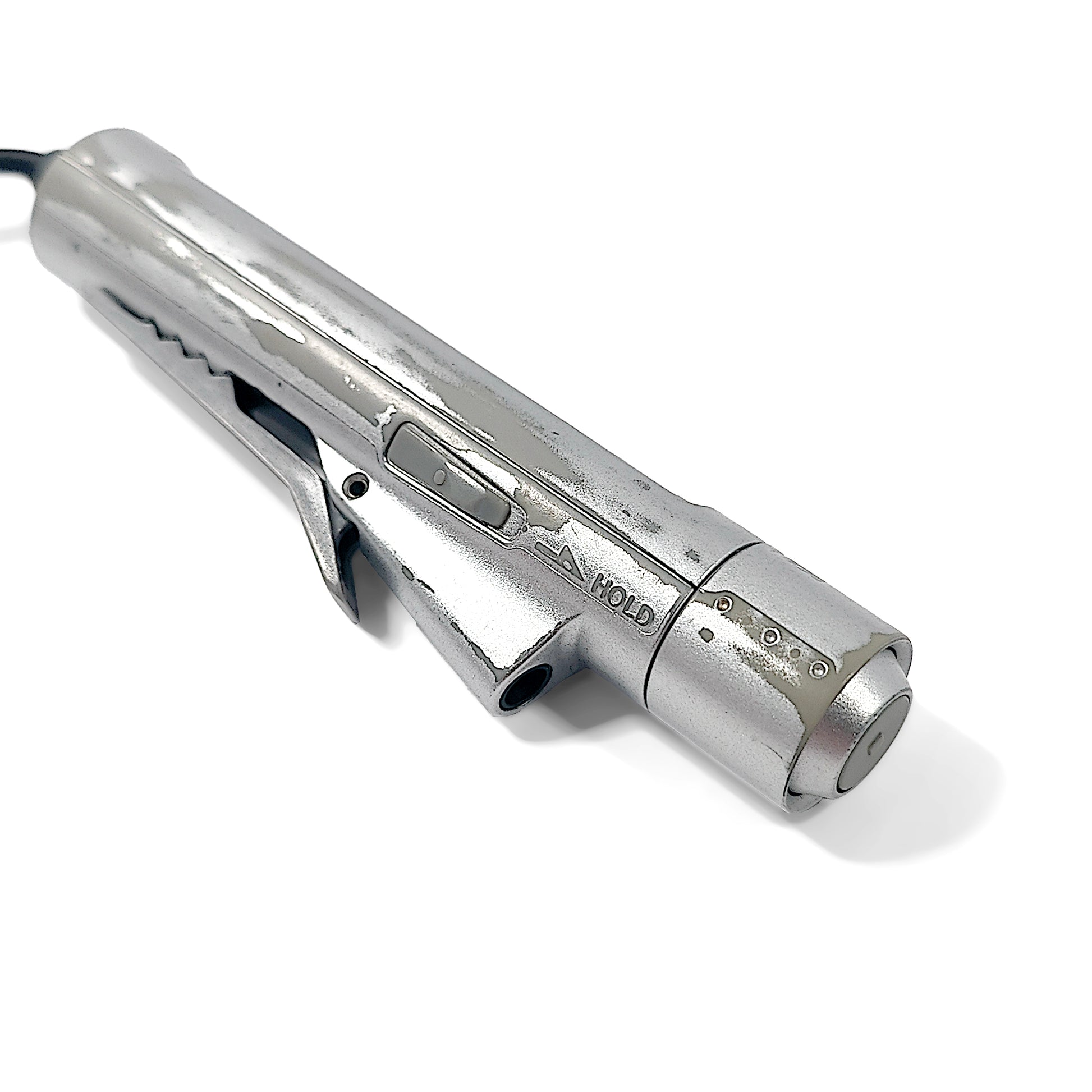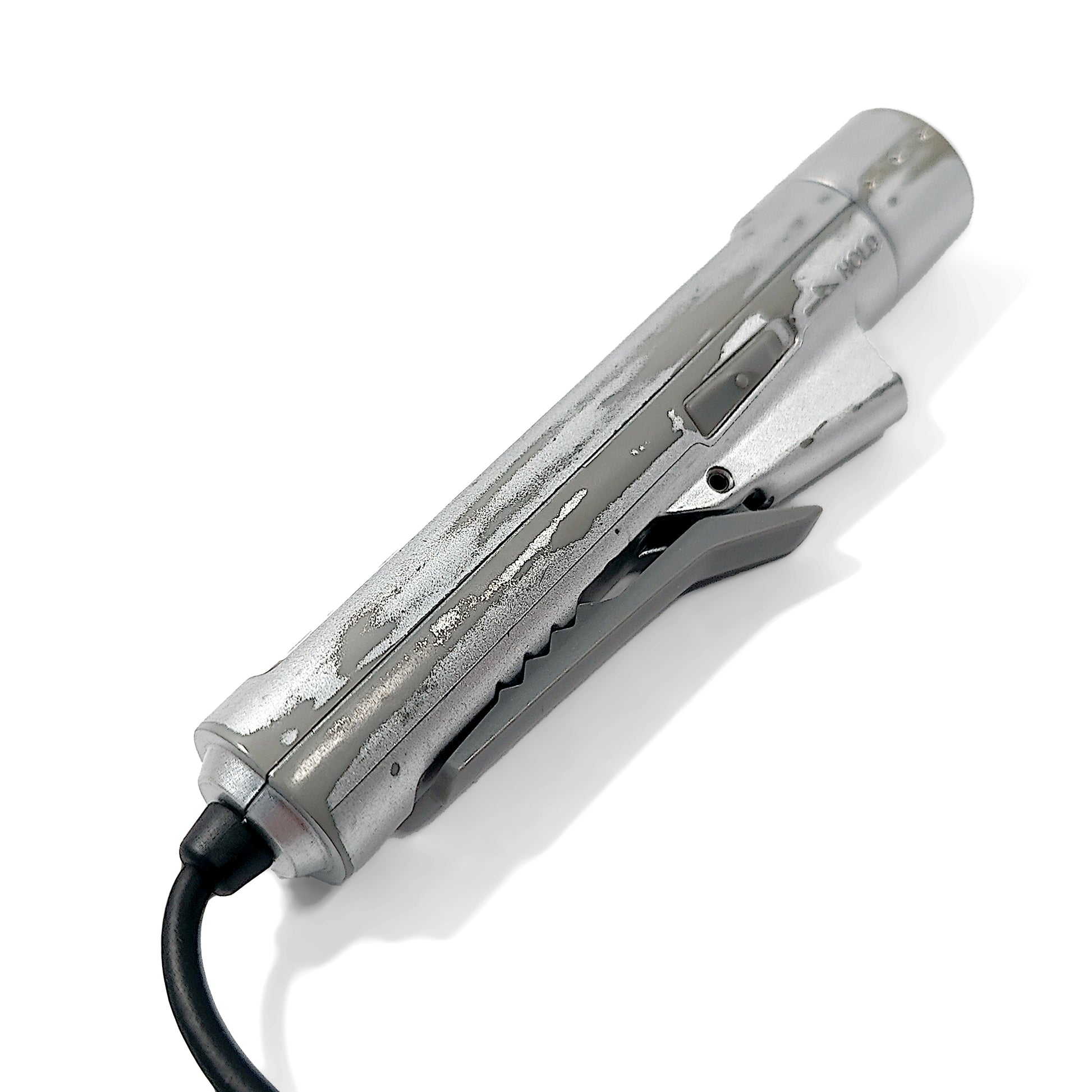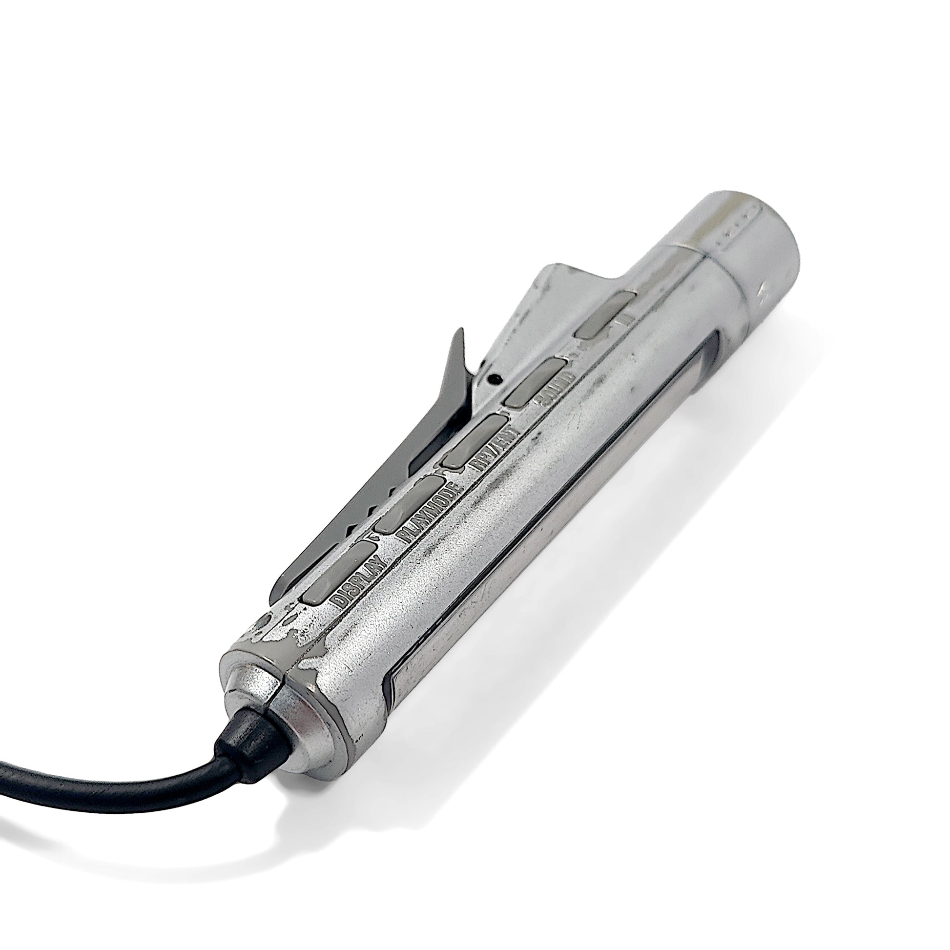 The device has signs of use and the silver paint has worn away in several places, revealing the grey plastic underneath.
