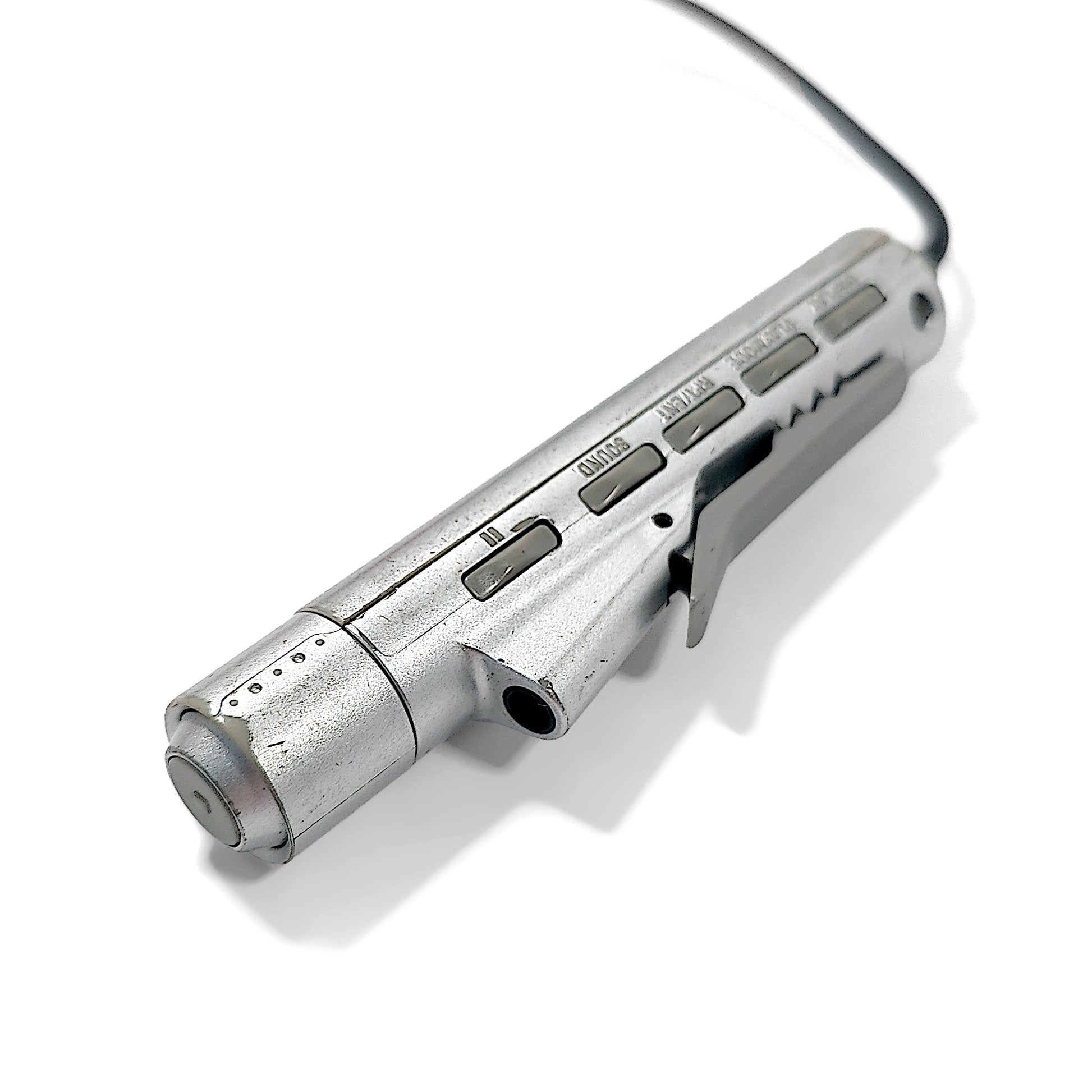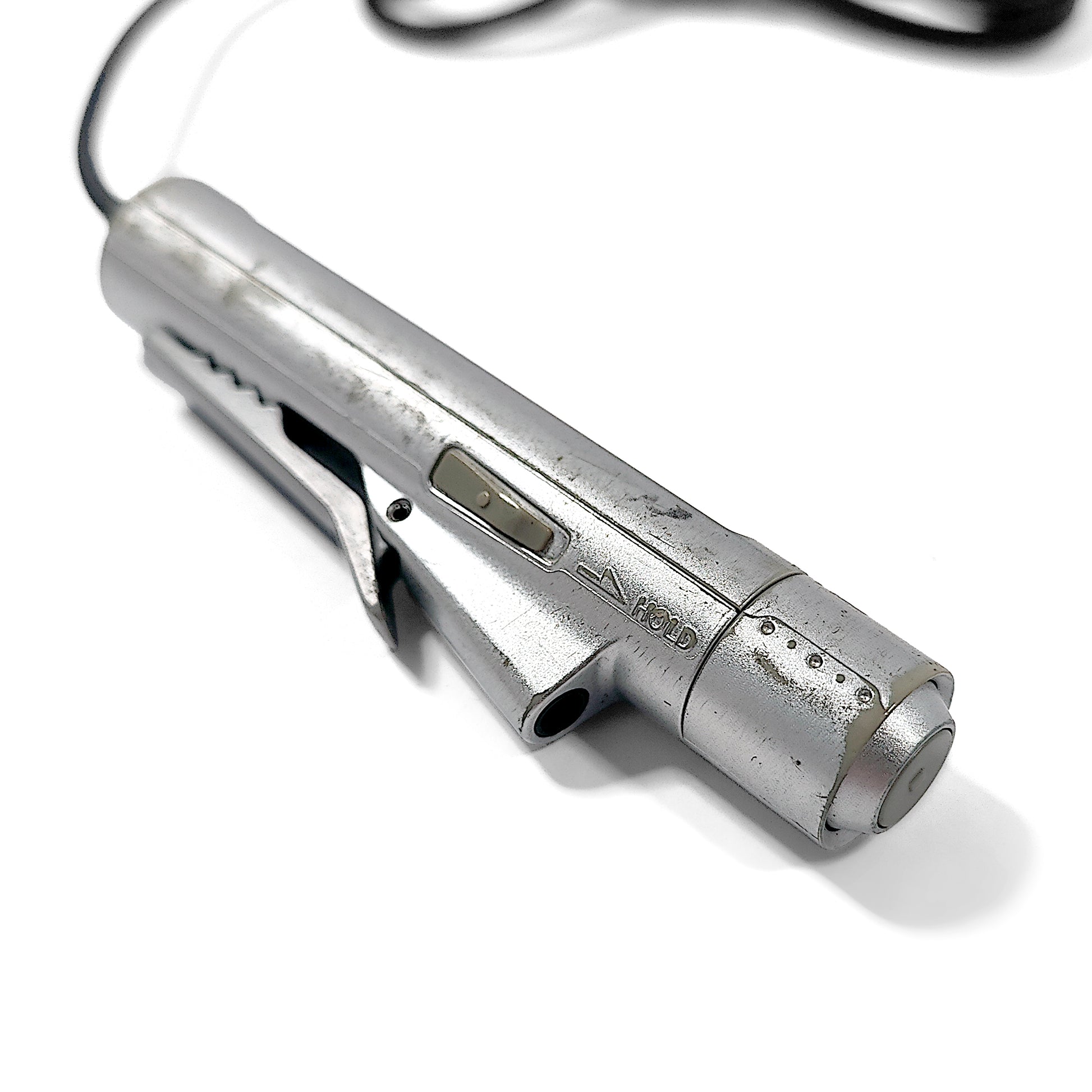 The device has signs of use and the silver paint has worn away in several places, revealing the grey plastic underneath.