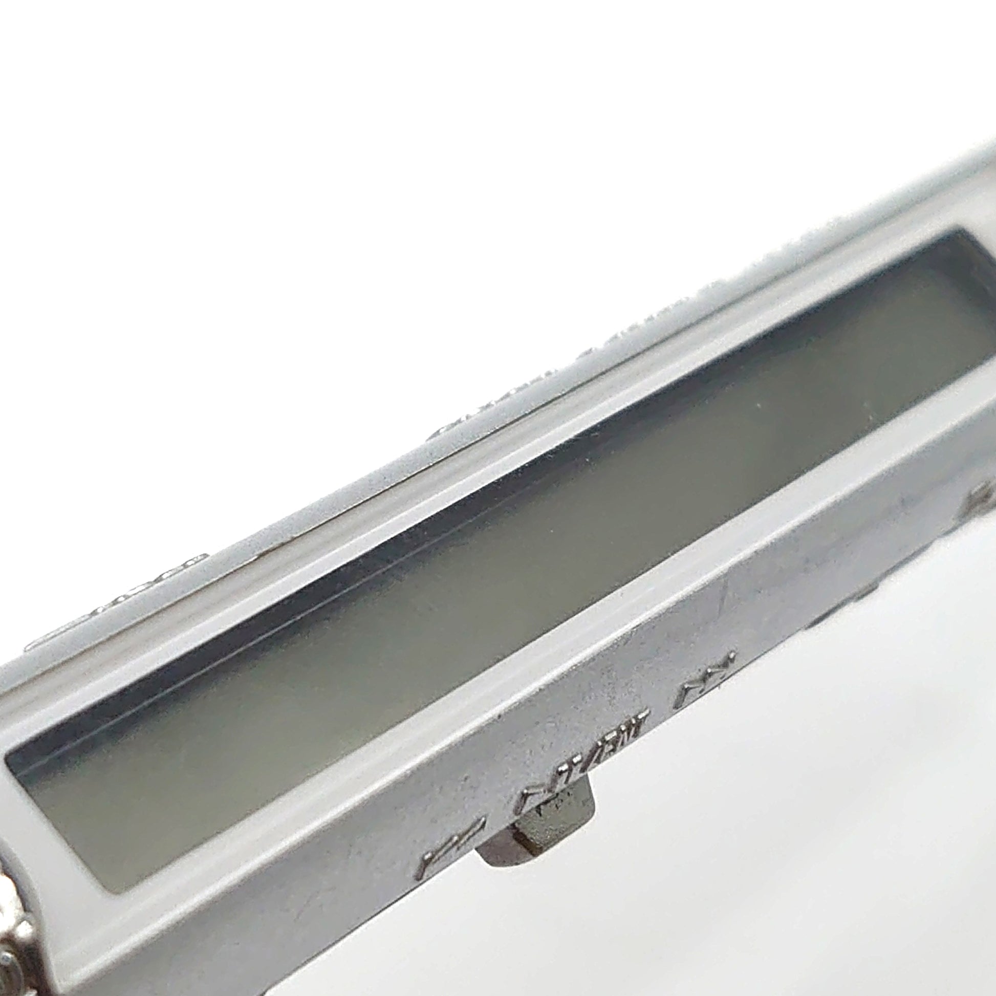 There is minor wear and tear on the body of the device where the silver paint has worn away, revealing the grey plastic underneath.