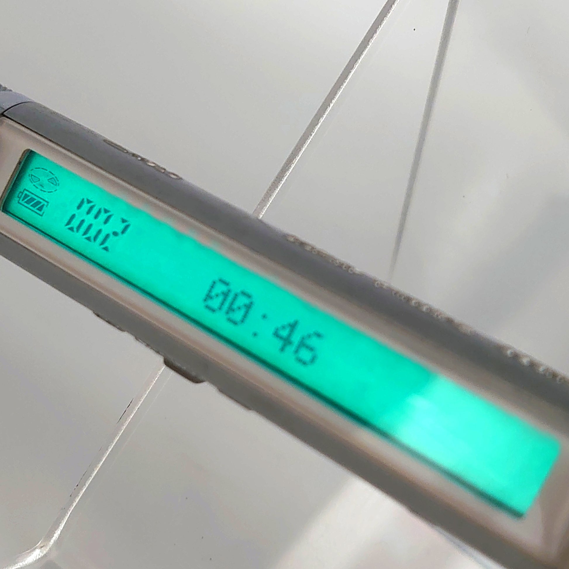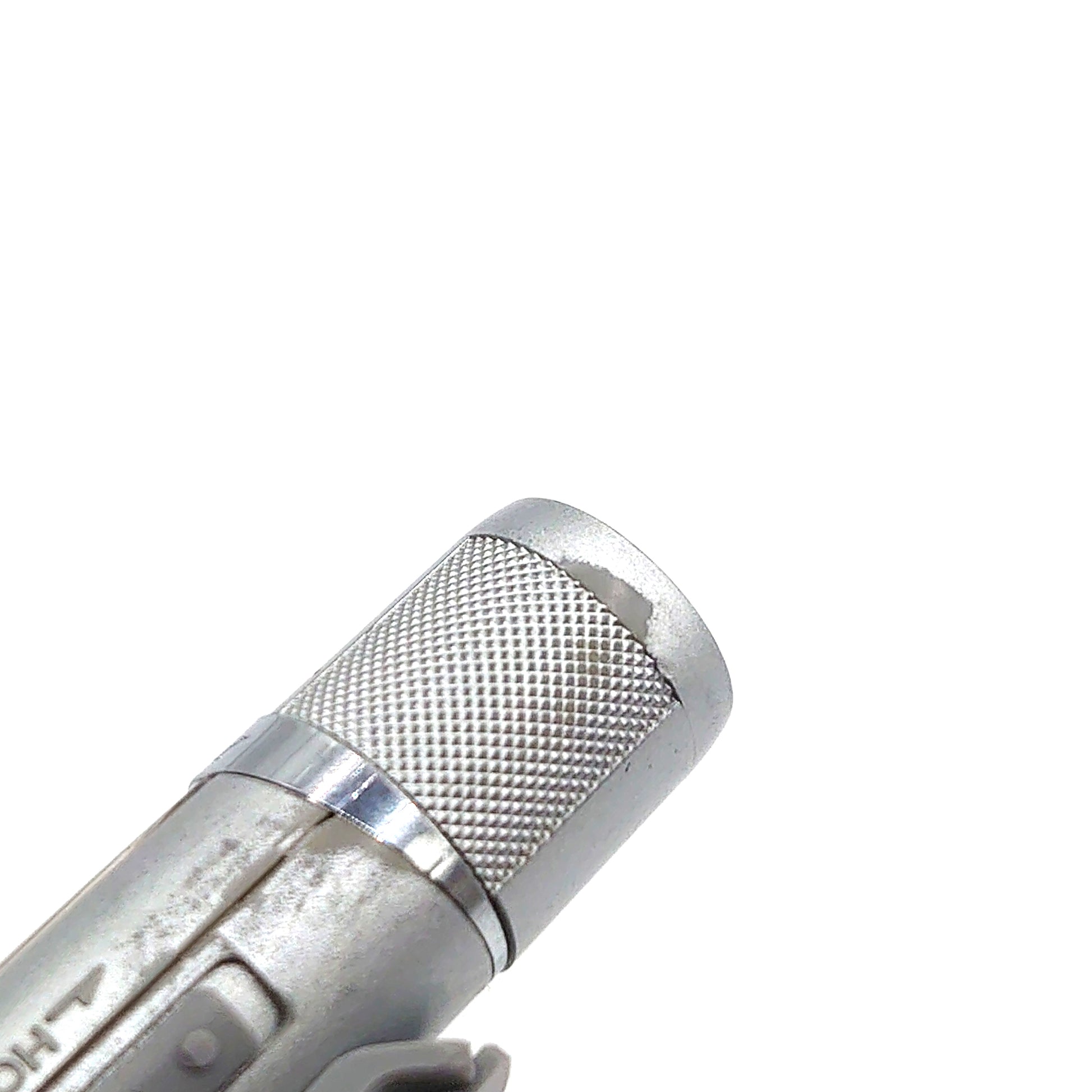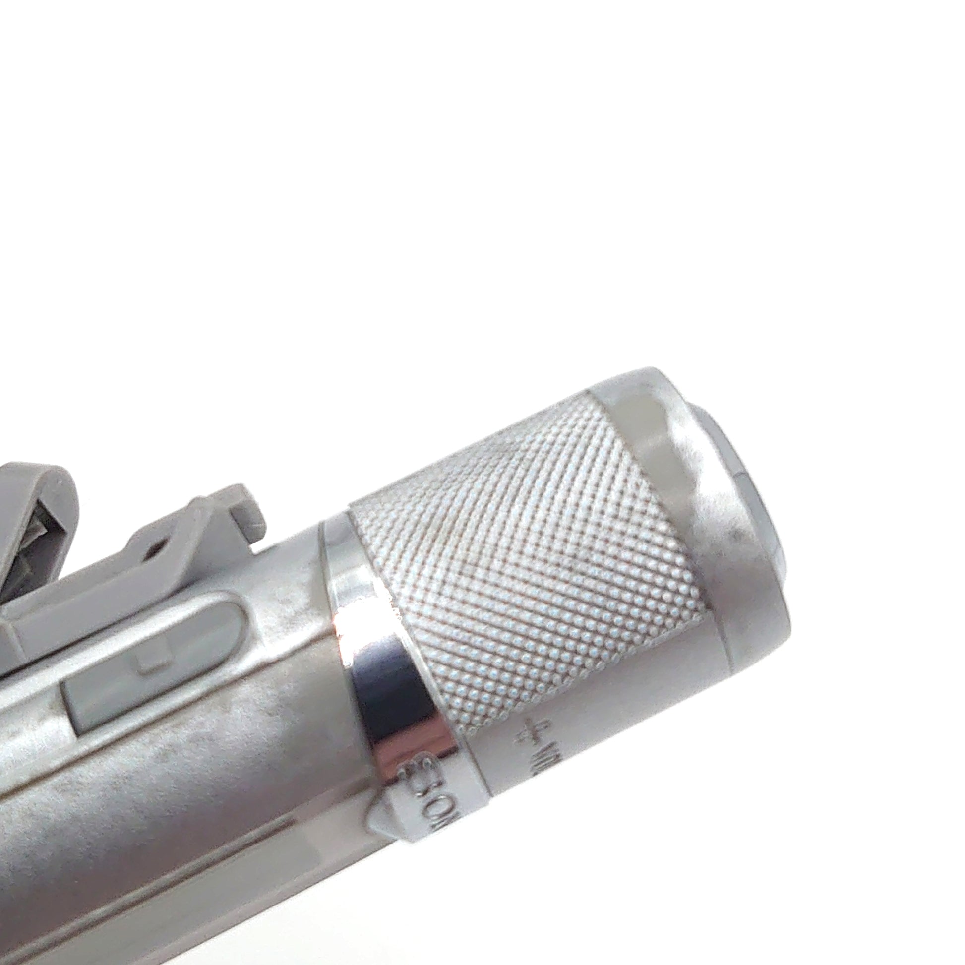 There is a lot of wear and tear on the body of the device where the silver paint has worn away, revealing the grey plastic underneath.