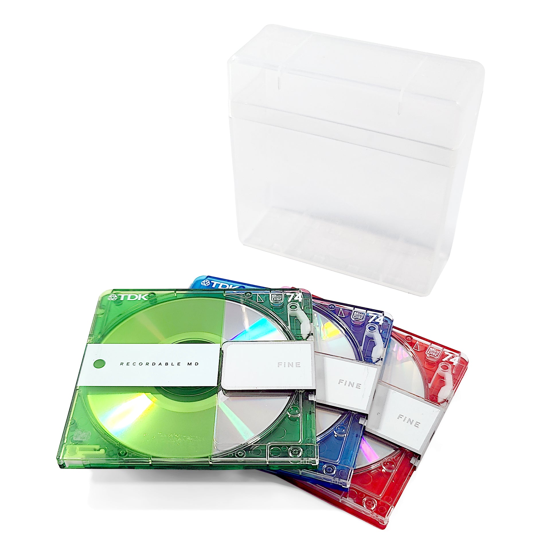 Genuine TDK FINE 74 (4th Series) recordable MiniDiscs with one case that holds up to five loose discs.