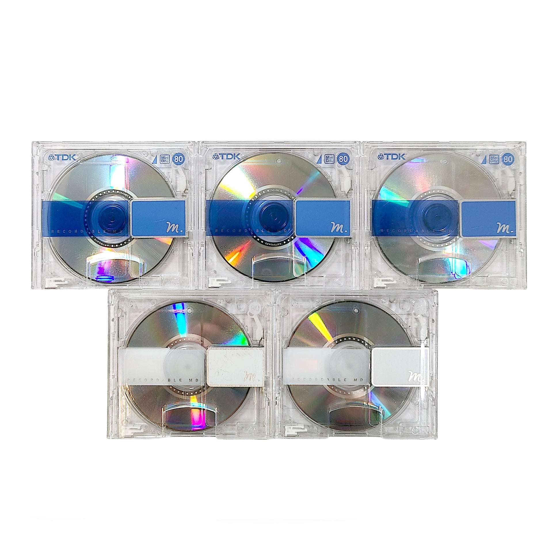 Genuine TDK m. (M) 80 minute recordable MiniDiscs. Includes TDK cases.