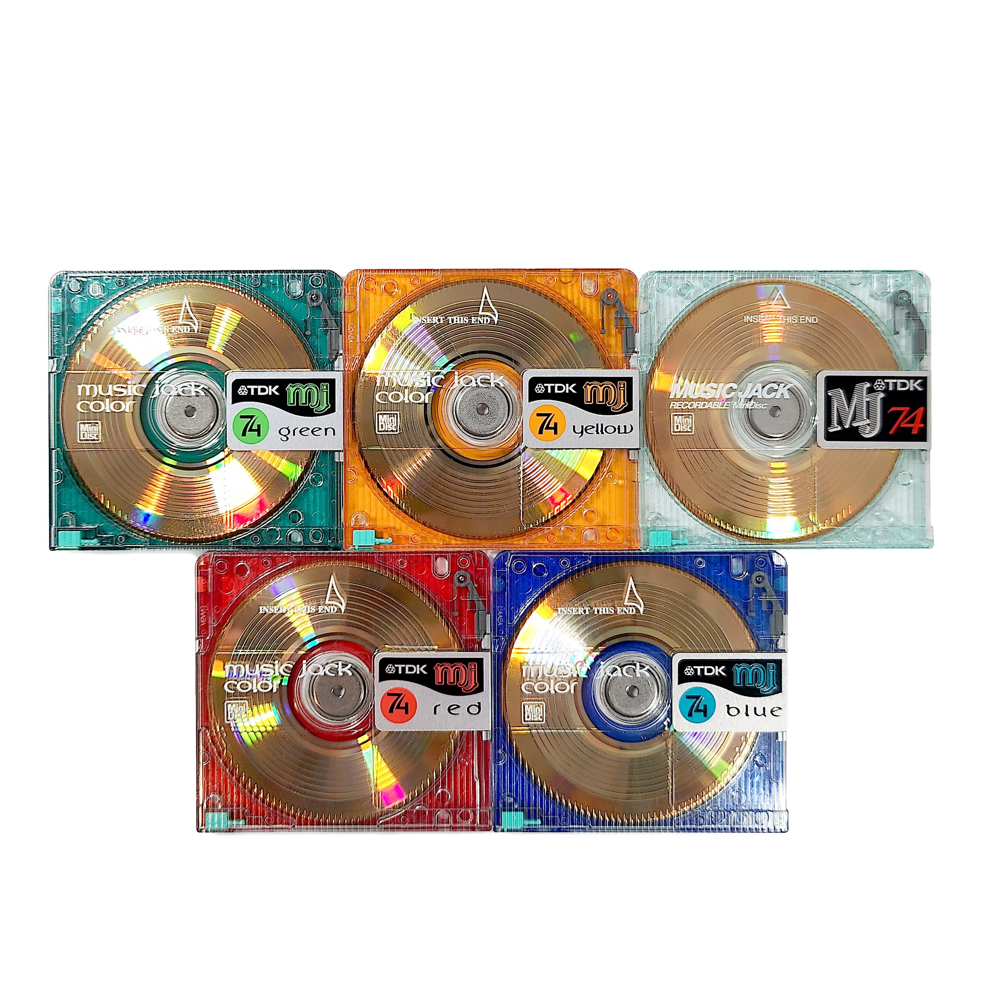 Genuine TDK Music Jack (2nd edition) 74 minute recordable MiniDiscs. Complete set of all colours from this series.