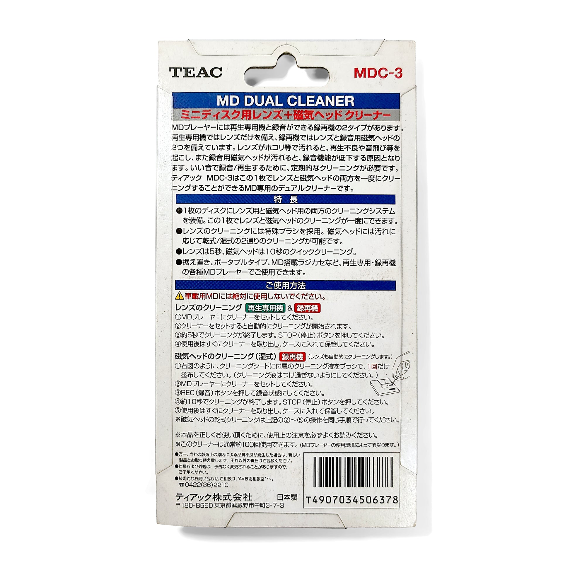 Genuine TEAC MDC-3 MiniDisc Head & Lens Cleaner (Japanese). Dry brush type for lens cleaning, and wet type for recording head cleaning.