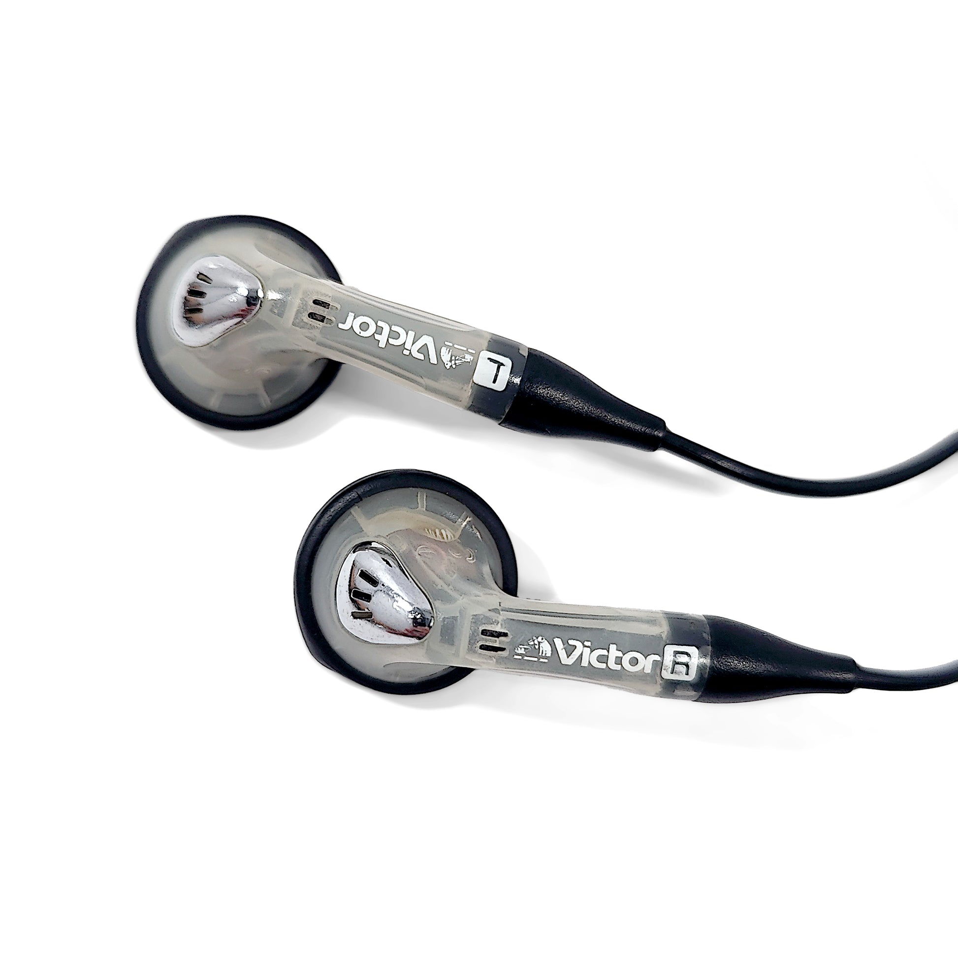 Victor JVC earphones (black, clear). Straight plug type. Quantity 1. Used.